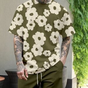 Remera de hombre verde con flores blancas