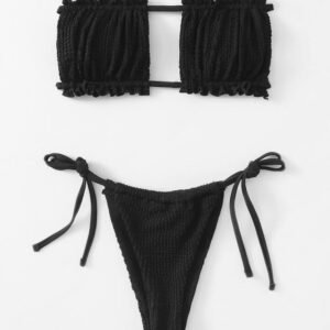 Bikini fruncido texturado negro