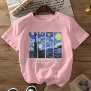 Remera rosa van gogh noche estrellada