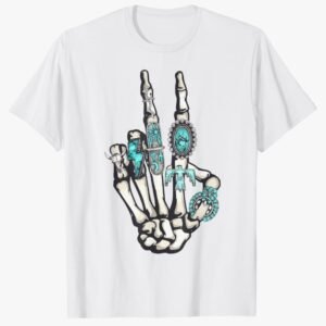 Remera blanca mano esqueleto paz
