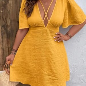 Vestido amarillo tiras en escote