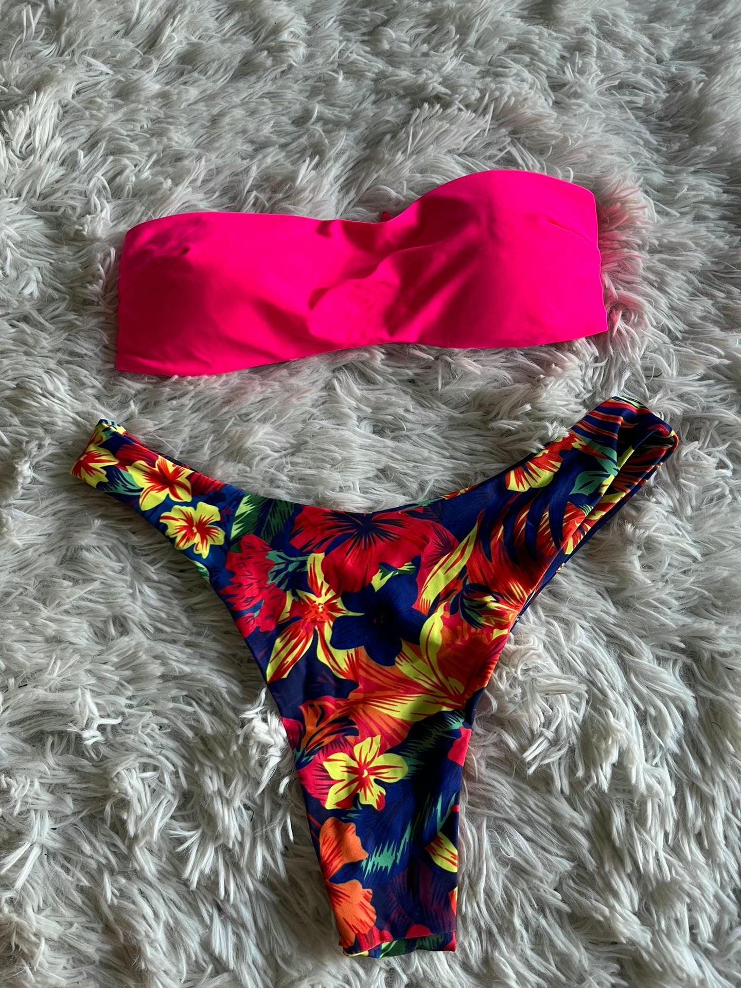 Bikini bandeau fucsia y azul floreado