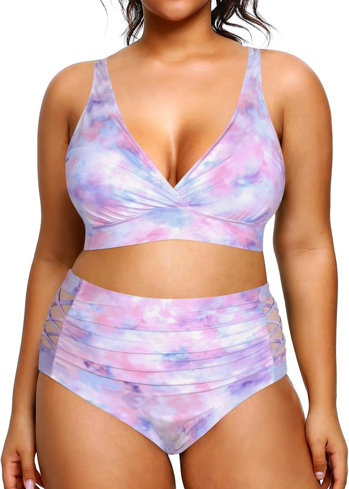 Bikini tie dye tonos pastel cruzada con transparencia abajo
