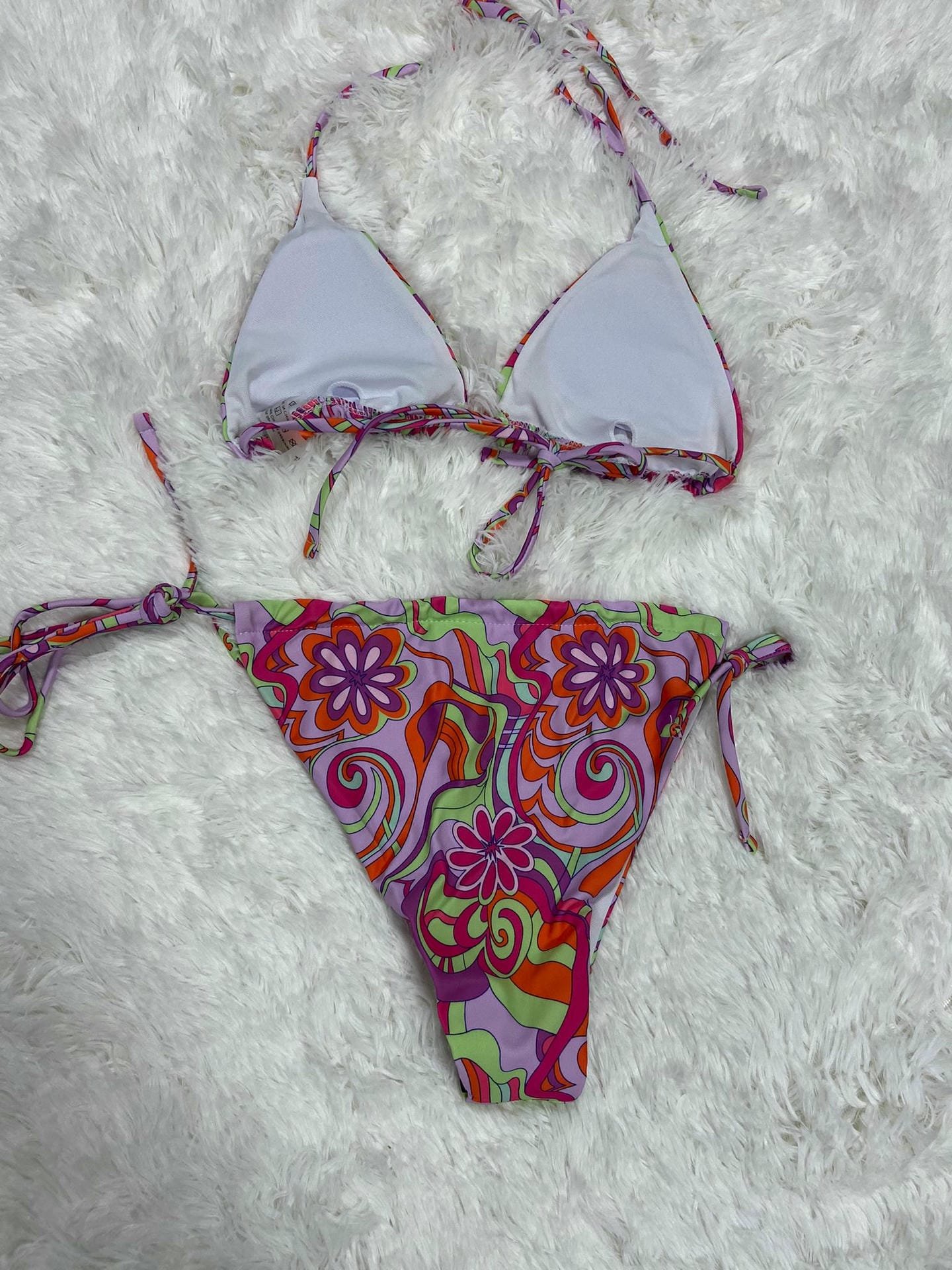 Sé el primero en valorar “Bikini malla trama floreada violeta y verde 2 piezas”