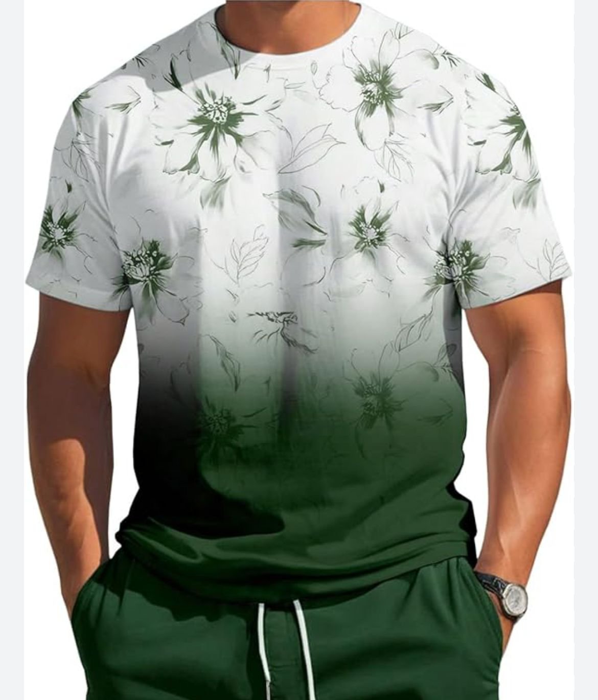 Remera blanca con verde en degrade flores