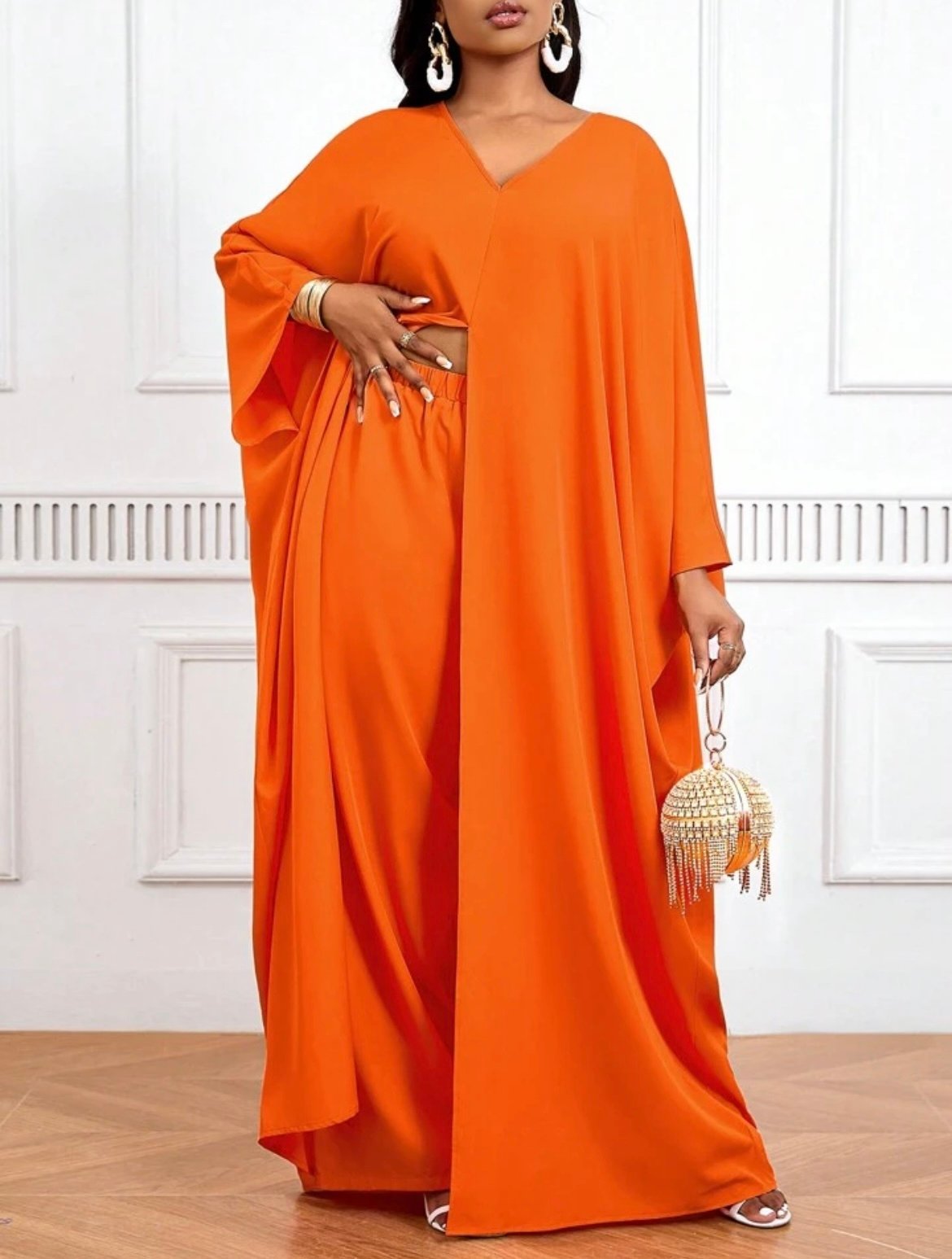 Vestido largo anaranjado apertura en el medio, no incluye pantalón
